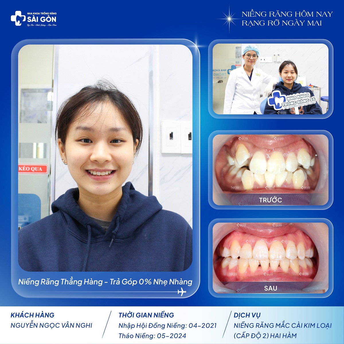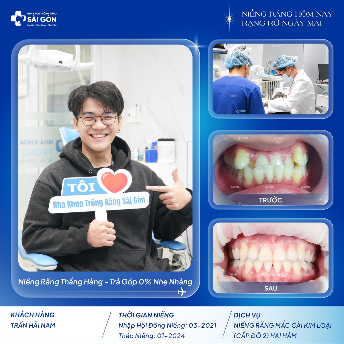 Được bạn giới thiệu về Nha khoa trồng răng SG để tới niềng răng, được đội ngũ nhân viên tư vấn tận tình, cũng như được bác sĩ Hiền đảm nhận trong suốt quá trình niềng, việc sắp xếp lịch hẹn rất linh hoạt, và được gọi điện hỏi thăm sức khỏe răng sau mỗi lần nhổ khiến mình an tâm hơn hẳn.