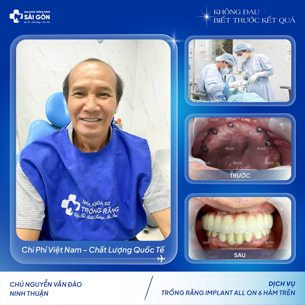 Nhiều năm chú phải chịu đựng cơn đau khi ăn, thường xuyên bỏ bữa, thức ăn kẹt trong khoảng trống mất răng,… Và chú khao khát được ăn ngon miệng. Con chú thấy nha khoa có trồng răng trọn gói trả góp, nên đăng ký thực hiện trồng răng Implant cho chú. Hôm nay, gắn răng sứ hoàn tất quá trình điều trị. Chú đang rất trông kết quả, mong được ăn nhai ngon miệng, tận hưởng cuộc sống trọn vẹn hơn.